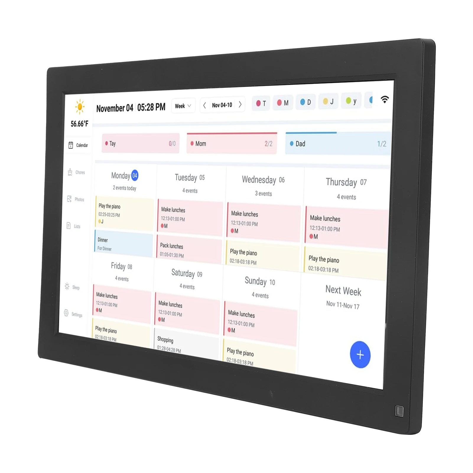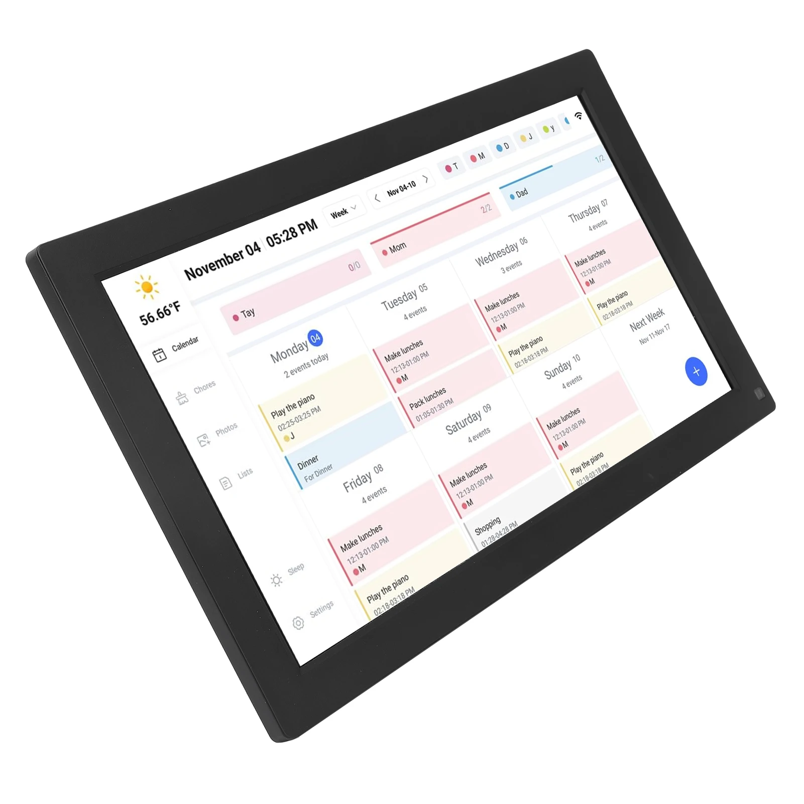 4. Storage, Sleep Function: This smart calendar has a storage card interface that supports up to 32GB storage card (excluded). It is capable of storing digital photos, turning the digital calendar into a digital photo frame. Sleep function is able to save power.
